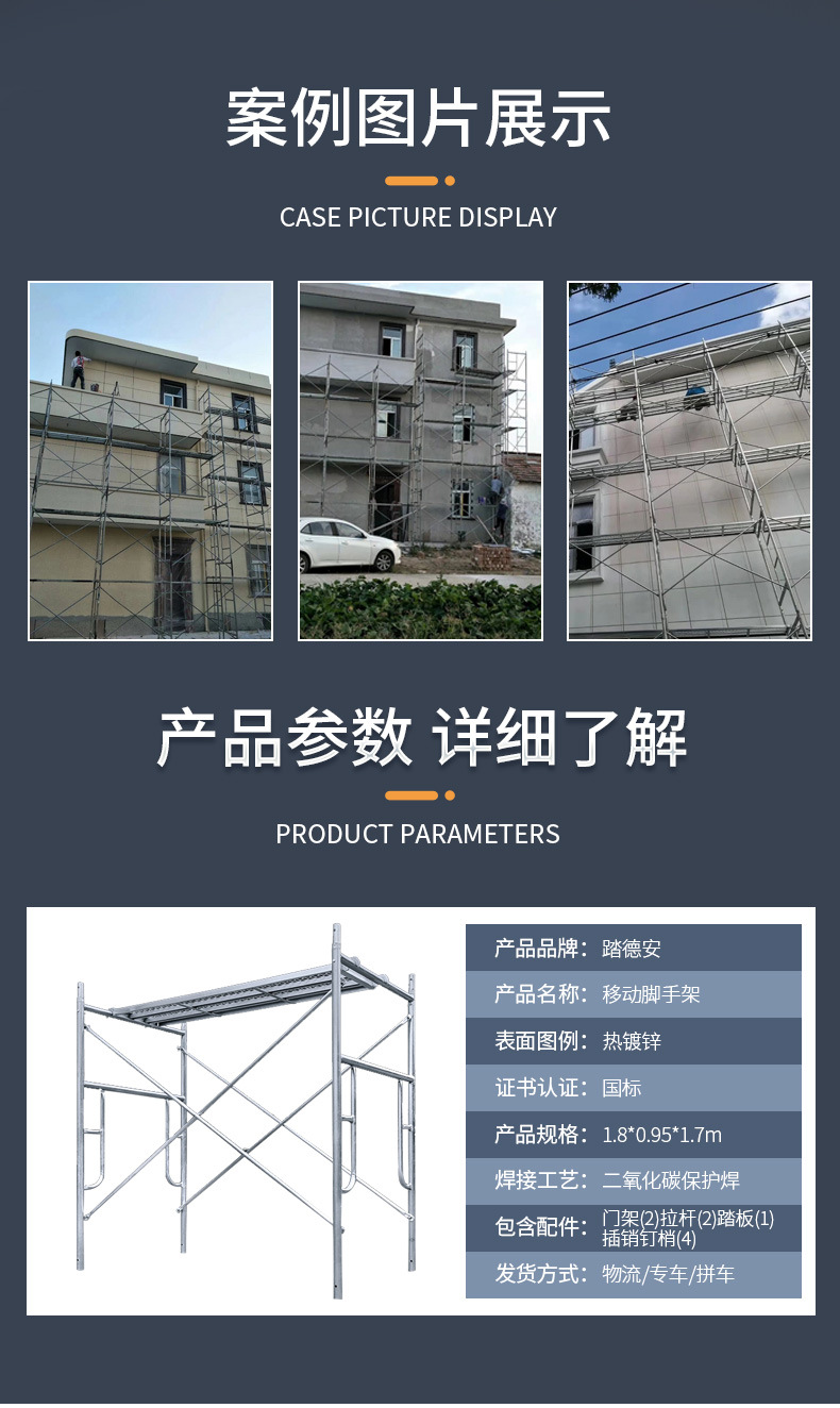 門式雙層腳手架結構簡單,移動方便,上下兩層可以站人和放置施工工具,增大了工人在施工中的性,并且腳手架下面還可以輕松過人,為施工