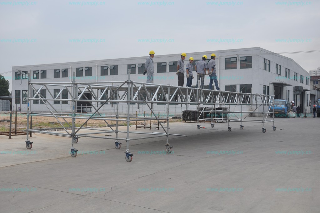 4、移動腳手架拆除時應按照“由上往下、逐層拆除”的要求進行拆除。